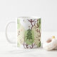 Texturierte Weihnachtsbäume und getrocknete Bäume. Kaffeetasse