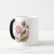 Entdecken Sie die bezaubernde Schönheit der thailändischen Kunst mit unserer Morphing-Tasse und zeigen Sie eine atemberaubende stilisierte Darstellung einer Blume. Im Mittelpunkt dieses exquisiten Designs steht eine große rosa Lotus-Blume, deren Blätter in einer faszinierenden Lage angeordnet sind, um einen faszinierenden Brennpunkt zu schaffen. Um den Lotus herum befinden sich elegant gearbeitete Knospen und Blätter, die mit verzierten Mustern und glänzenden goldenen Akzenten verziert sind, die die Ästhetik insgesamt erheben. Die üppig grünen Blätter sind mit aufwändigen Venenmustern detailliert, während die Knospen atemberaubende Blau- und Goldtöne aufweisen. Diese symmetrische Komposition wird durch traditionelle thailändische Dekorationselemente wie wirbelnde Linien und flammähnliche Motive ergänzt, die das reiche Kulturerbe Thailands würdigen. Der Lotus, ein Symbol für Reinheit und spirituelles Erwachen, verkörpert wunderbar das Wesen der thailändischen Kultur. Genießen Sie die Transformation Ihrer Lieblingsgetränke mit dieser wunderschön gestalteten morphenden Tasse - eine perfekte Mischung aus Kunst und Funktion, die die zeitlose Eleganz des thailändischen Erbes würdigt. "generativer Inhalt"