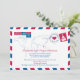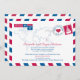 Eine witzige Post Wedding Reception, die an alle Ihre Gäste schickt, die Ihre Hochzeit in Urlaubsort ankündigen. Airmail Design mit Weltkarte und Herz über der thailändischen Lage. Für Anfragen über kundenspezifische Designänderungen des unabhängigen Designers senden Sie bitte eine E-Mail an paula@labellarue.com BEVOR Sie Ihre Bestellung anpassen oder anpassen.