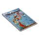 Wieder hergestelltes und digital erhöhtes Reiseplakat, das eine Wegkarte mit stilisierten asiatischen Leuten und Strukturen zeigt. Die meisten Unvollkommenheiten und die Risse entfernt. Farben korrigiert. Bildhöflichkeit der Kongressbibliothek.
