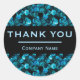This trendy, dramatic Thank You sticker features teal blue shiny swirls that look almost like muted gems or sequins, set against dramatic black. In the middle, the text Thank YOU and you organization or company name appears in dark aqua against black, bordered in a matching dark aqua. Make sure to type your name, company, or organization name to replace the placeholder name.