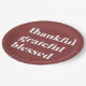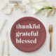 Set your fall table with style and gratitude using these Thankful Grateful Blessed Paper Plates, featuring elegant ivory serif lettering on a warm terracotta background.