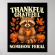 Thankful Grateful Somehow Feral Funny Raccoon Autu Poster