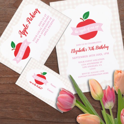 Der Augapfel! Geburtstag für Kinder mit rosa und roten Apfelkindern mit Gingham.