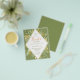 Handbemalte Aquarellgrün in hellen Tönen von grün und geerntet Gold Erntedank Community Dinner Einladung Tempel mit einfaches Bearbeiten handgeschriebener Schrift. Alle Texte können bearbeitet werden; Schriftart, Farbe, Hintergrund und Layout können nach Stil und Geschmack geändert werden.