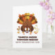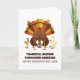 Bring all the laughs to Thanksgiving get-together with this funny turducken Thanksgiving Card, featuring a cartoon turkey, duck, and chicken and the quote "THANKFUL, BLESSED, TURDUCKEN OBSESSED". Perfect for turkey trot gift-giving and Friendsgiving, this Thanksgiving Card can be personalized with your family name and message inside. Totally conversation‑starting, this Thanksgiving Card is a must‑send for anyone who loves the turducken tradition and fall family gatherings. Also available in black.