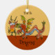 Eine skurrile Cartoon Drachendarstellung auf einem Ornament ist in lila, rosa, maron, mit einem grünen Streifen unten. Sie können Text bearbeiten, um Ihr eigenes personalisiertes Geschenk zu erstellen. Hilfe benötigen, E-Mail: lilly@lillyarts.com