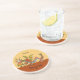 Eine skurrile Cartoon-Dragon-Illustration auf diesem Untersetzer ist in Braun, Golden, Orange, mit einem blassblauen Unterteil. Sie können Text bearbeiten, um Ihr eigenes personalisiertes Geschenk zu erstellen. Hilfe benötigen, E-Mail: lilly@lillyarts.com