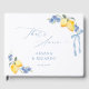 Collect memories with this That’s Amore wedding guestbook, featuring hand-painted lemons, blue bows, and soft watercolor florals inspired by the Italian coast. Perfect for Mediterranean weddings, lemon-themed celebrations, or summer receptions, this lemon guestbook adds fresh charm and romantic elegance. A beautiful keepsake for couples who love European-inspired details and bright, joyful color palettes.