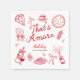 Host a memorable Italian-themed celebration with this editable "That's Amore" bridal shower napkins, featuring charming hand-drawn pizza and pasta illustrations in a rustic red whimsical hand-drawn style.