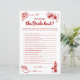 This playful bridal shower game brings instant joy and connection to your celebration, inviting guests to share memories, laugh together, and discover how well they really know the bride. The charming red Italian wine theme adds a warm, romantic touch that feels perfect for bridal showers, bachelorette events, wedding brunches, and rehearsal gatherings. Each question is simple, fun, and designed to spark conversation. This coordinating design pairs beautifully with matching items in the same style, making it easy to create a unified look throughout your bridal suite. Personalize effortlessly and enjoy a keepsake-quality finish that feels special in any setting.