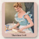 A stylized, retro-inspired image depicts a smiling woman in a pastel blue ruffled dress and white apron, rolling out dough on a kitchen countertop. Her hair is neatly styled in soft curls, and she wears elegant drop earrings, evoking a classic 1950s aesthetic. Baking ingredients and a box of baking mix sit nearby, reinforcing the domestic, vintage kitchen scene. At the bottom of the image, the playful caption “That’s how I roll” adds a humorous, modern twist to the nostalgic setting. The overall tone blends mid-century charm with lighthearted wit.