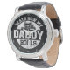 This personal wall clock proudly celebrates a father's identity as a truck driver. Against a black background with a white rim, it features a semi-truck silhouette in a distressed white style. The bold, impactful text "THAT'S HOW MY DADDY ROLLS" makes it a perfect tribute from a child to their trucking dad. This clock is an excellent gift to show appreciation for a hardworking father. The design tool can also be used to add custom text if you want your name or company on this clock. You can customize the color of the frame to any color you desire by going into the design tool.