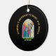 This design features a stained-glass-style illustration of The Annunciation, where the Angel Gabriel delivers his message to the Virgin Mary, with the Holy Spirit symbolized by a dove above them. The illustration is crowned by the curved text "GABRIEL'S MESSAGE TO MARY: AVE MARIA" and the title "THE ANNUNCIATION OF THE LORD" at the bottom, all set against a contrasting black background.