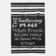 Ein lustiges und heimeliges Küchentuch mit dem Sprichwort "Der Ansammlung-Ort, wo Freunde zur Familie werden" Fügen Sie Familiennamen für Personalisierung hinzu. Ich würde ein tolles Geschenk oder eine Ergänzung zu Ihrer Wohngestaltung machen.