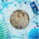 Dieses Design zeigt ein Gemälde der schottischen Künstlerin Bessie MacNicol (1869-1904), die mit der Glasgow School of Art in Verbindung stand. Es zeigt eine junge Frau in einem weißen Kleid, während sie sich anmutig unter den Kleider eines Apfelbaumes sitzt. Sie hält einen Strauß Blume in ihrer links Hand und einen Damenspiegel in der rechten Hand. Ihr Haar ist kastanienbraun und fällt bis zum Nacken hinab; sie hat auch Blume im Haar. Sie lächelt den Betrachter mit einer einfachen und sorglosen Freude an. Die Blätter des Apfelbaumes sind hinter ihr grün. Es ist ein heller Sommertag, und sie scheint auf dem Gras zu sitzen. Das Originalwerk wurde 1899 von Bessie MacNicol gemalt.