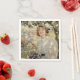 Dieses Design zeigt ein Gemälde der schottischen Künstlerin Bessie MacNicol (1869-1904), die mit der Glasgow School of Art in Verbindung stand. Es zeigt eine junge Frau in einem weißen Kleid, während sie sich anmutig unter den Kleider eines Apfelbaumes sitzt. Sie hält einen Strauß Blume in ihrer links Hand und einen Damenspiegel in der rechten Hand. Ihr Haar ist kastanienbraun und fällt bis zum Nacken hinab; sie hat auch Blume im Haar. Sie lächelt den Betrachter mit einer einfachen und sorglosen Freude an. Die Blätter des Apfelbaumes sind hinter ihr grün. Es ist ein heller Sommertag, und sie scheint auf dem Gras zu sitzen. Das Originalwerk wurde 1899 von Bessie MacNicol gemalt.