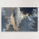 Immerse yourself in a world where mathematics and nature collide with this breathtaking jigsaw puzzle. This unique design features a surreal celestial vista, where jagged mountain peaks emerge through a golden-rimmed tear in a deep indigo sky. The composition is layered with intricate handwritten mathematical equations and geometric sketches, suggesting the universe is being designed or calculated in real-time.