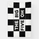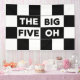 50th birthday party banner features a bold black and white checkered pattern with the words "The Big Five Oh" in alternating white on black and black on white text.