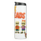 Bring some spooky-fun style to your daily routine with this vibrant travel mug featuring the lovable skeleton crew—Bella, Calvin, Tyrone, and Kyle! These cheerful boneheads are decked out in bold colors and big grins, perfect for adding a dose of humor to your coffee or cocoa break. Whether you're commuting, camping, or just causing a ruckus at school drop-off, this mug has your back (and your bones).