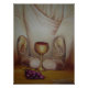 Celebrate the mystery of faith with this profound painting focused on the Holy Eucharist. The artwork features the hands of Christ, marked by the stigmata, blessing the chalice of wine and the broken bread. Surrounded by symbolic wheat and grapes, this piece beautifully illustrates the 'Bread of Life' and the divine sacrifice. It is an exceptionally meaningful gift for First Holy Communions, ordinations, or as a reverent addition to a family dining room or church altar.