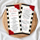 Die schicke, moderne Luxus-Hochzeitskollektion besticht durch einen klassischen schwarz-weißen Streifen-Hintergrund, der durch hübsche rubinfarbene rote Rosen und ein vergoldetes Imitat-Folienrahmen betont wird. Diese Programmkarten sind leicht zu personalisieren und werden die perfekte Reihenfolge für jede Hochzeit, jedes Brautparty, jede Geburtstagsfeier, jede Verlobung oder jeden anderen besondere Anlass sein.
