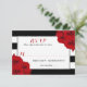 Die schicke, moderne Luxus-Hochzeitskollektion besticht durch einen klassischen schwarz-weißen Streifen-Hintergrund, der durch hübsche rubinfarbene rote Rosen betont wird. Diese RSVP-Karten sind einfach zu personalisieren und sind die perfekte Antwortkarte für jede Hochzeit, jedes Brautparty, jede Geburtstagsfeier, jede Verlobung oder jeden anderen besondere Anlass.