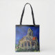 The tote bag features Van Gogh’s The Church at Auvers (1890), depicting the church against a vivid blue sky, showcasing his characteristic style with bold brushwork. Personalize it with your name or a short text at the top on both sides.