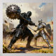 Two armored knights face off in a fierce battle. The intense action is set against a backdrop of a medieval castle and spectators.
