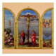 This richly detailed triptych was intended for private devotion; an old inventory label on the back indicates that it once belonged to the Stiozzi Ridolfi family.