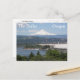 Travel Postcard mit dem Foto-Bild eines landschaftlichen Ausblicks auf The Dalles, Oregon zeigt schneebedeckte Monte Hood und den Dalles Staudamm entlang des Columbia River. Wählen Sie aus einer matten oder glänzenden Stilkarte.