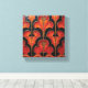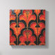 A set of six square tiles arranged in a 2x3 grid, featuring an Art Deco-inspired design with a color palette of orange, red, and black. The design consists of stylized floral or fan-like motifs, with the orange and red areas having a webbed or segmented appearance, reminiscent of stained glass. The black elements provide a strong contrast, outlining the shapes and adding depth to the design.