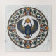 This puzzle features Khepri, the dawn manifestation of the Sun God Ra. He is the god of rebirth, creation, and pushing heavy things uphill. Just as Khepri rolls the solar disk from the underworld into the morning sky, you shall roll these puzzle pieces across your dining room table.