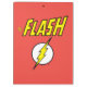 Check out this iconic logo for The Flash, featuring his name in telescopic speed style over the bright yellow lightning bolt in circle icon!
