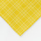 A reversible blanket is displayed. The front features a bright yellow checkered pattern with subtle texture, while the back is plain white with a soft, wrinkled texture.