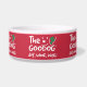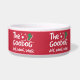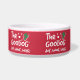 Serve up holiday cheer with this festive red dog bowl featuring a playful white and green The Goodog™ smiling dog face silhouette. Perfect for spreading Joy. Woof. Wag.™ at every meal, it’s a cheerful way to keep your pup’s holiday spirit bright. The Goodog™ design is a trademark of EMR Designs.