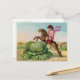 Die Herden von 'Hoppers' begrenzen sich durch den Gemüsepflaster. Ein Miniaturjockey drängt auf sein Hasen, während er über Kohlehindernisse prallt. Das bunte, humorvolle Bild ist perfekt für Dekoration, Accessoires und Korrespondenz.