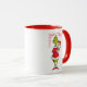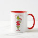 This heartwarming illustration captures the moment the Grinch's heart grew three sizes! The full-body image shows the tall Grinch dressed in his fuzzy red Santa suit, gently holding the tiny Cindy Lou Who, who is sweetly dressed in a matching little Santa cap and pink outfit, holding a candy cane. The Grinch is genuinely smiling (not scheming!), and red lines radiate from his head, illustrating his newfound Christmas joy. It's the perfect image for celebrating the true spirit of the holidays!