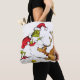 This hilarious illustration captures the precise moment the Grinch decides his dog needs an upgrade! The Grinch, dressed in his full, fuzzy Santa suit, is meticulously tying a single reindeer antler onto the head of his dog, Max, using a piece of string or yarn. Poor Max looks utterly resigned to his fate as the "reluctant reindeer." This fun, classic illustration perfectly highlights the absurd and mischievous planning behind the famous Christmas heist!