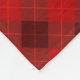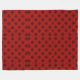 The image shows a reversible blanket with a red and black plaid pattern on the front and a plain white back. The blanket is displayed flat against a neutral background.