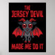 This quirky design features an adorable yet mischievous Jersey Devil with glowing red eyes curly striped horns and bold bat-like wings. Its cheeky grin hints at playful trouble perfectly paired with the phrase The Jersey Devil Made Me Do It making it a fun lighthearted tribute to harmless mischief and legendary folklore. Tags: kawaii, cryptid, jersey devil, adorable, quirky, folklore, gothic, whimsical, monster, mythical, mischievous, playful, jersey devil art, cute cryptid design, quirky folklore creature, mischievous monster vibe, adorable devil cartoon, spooky cute illustration, whimsical cryptid humor, mythical creature aesthetic, paranormal themed design, cryptid lover theme, playful gothic aesthetic, funny monster artwork, folklore inspired graphic