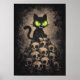 The Last Hiss - Retro Cat On Skulls, Dark Cartoon Poster