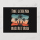Funny vintage design with beach palms and the quote "The legend has retired"