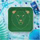 An expressive and elegant depiction of a lion's head, focusing on its regal symmetry and defining features. The artwork uses a stylized, flowing contour line for the main structure, complemented by filled-in details for the eyes, inner ears, and nose, evoking a sense of ancient heraldry. The gold-on-gray color scheme gives it a warm, premium, and sophisticated look.