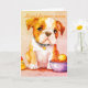 The design of this card is that of a very cute baby Bulldog who is a pondering thoughts about loyalty and friendship as he/ she is about to eat. The portrait is almost in a cute cartoon with a touch of vintage added to the scene.