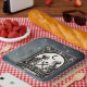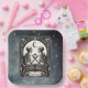 Dark skies are the background of this celestial tarot card The Lovers wedding suite. There is a bride and groom skeleton couple with a heart hovering above their hands and a crescent moon. Show off your unique personal style! See coordinating items in our shop, Enchanted Finch.