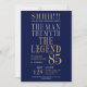 His life has been a great adventure! This fabulous navy blue men's 85th birthday surprise party invitation that says "The Man The Myth The Legend" in a classic font in silver and gold would be perfect for asking people to join you as you celebrate the man in your life's 85th birthday. This invitation is trendy, stylish, modern and contemporary. The photo on the back makes it just that much more special. To see your unique invitations select "Personalize this template" and type in your information and upload a favorite photo. It's super easy!