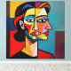 The Mask and the Monster - Portrait of a Deceiver. A vivid cubist portrait capturing the haunting dichotomy of a woman with a polished, genteel façade hiding a snarling, vindictive temperament. The dual expressions symbolize the disarming charm and sudden cruelty some individuals wield, revealing their sociopathic tendencies through psychological manipulation and coercive control.