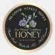Hübsche native Wildblumen auf schwarzem Hintergrund mit blassgoldenem Text und goldenem Farbverlauf. "Honig" wird mit einem "geprägten" Schriftart in einem leichten metallischen Goldgradienten geschrieben. Geben Sie Ihren Namen, Honignettogewicht, Ort und Kontaktdaten ein. Und —Gute Bienenzucht!