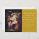 Design features a reproduction of the painting entitled, "The Nativity" by French painter Noel Coypel on front. A gold-colored background is featured at right displaying a customizable Christmas greeting in an elegant white font.